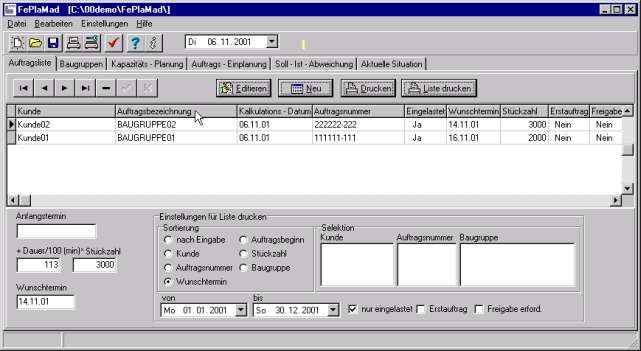 In dieser Auftragsliste sind u.a. alle Aufträge ersichtlich welche aktuell eingelastet sind.