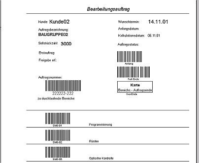 Daten sowie die zu durchlaufenden Stationen als Barcode und